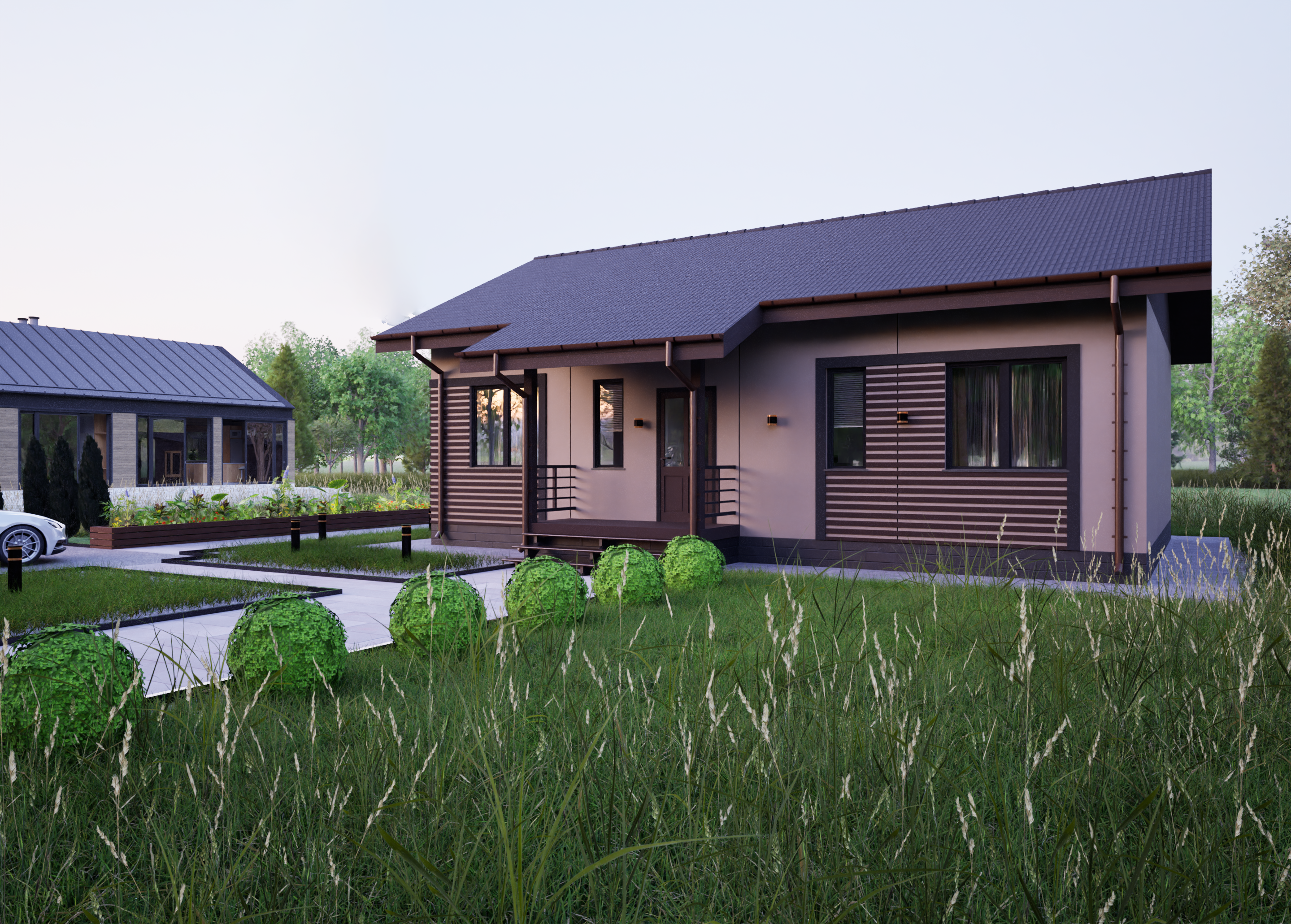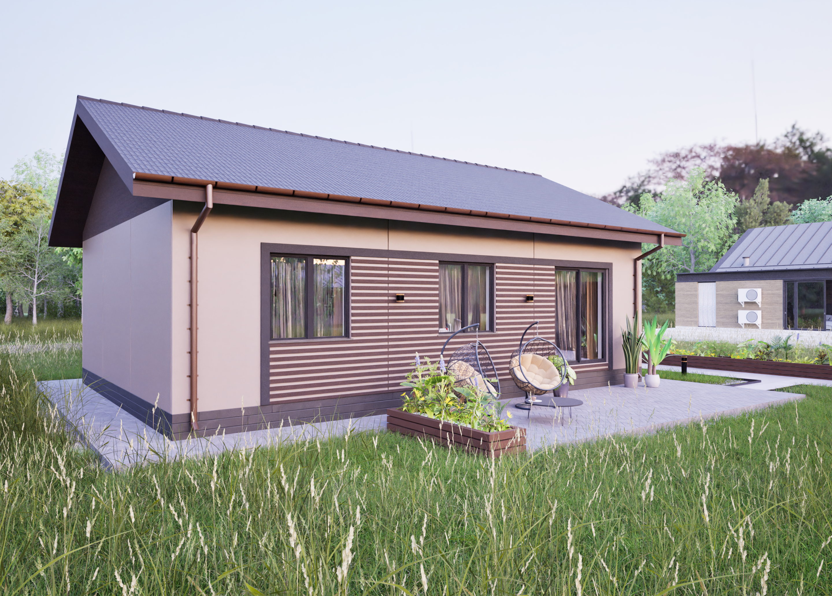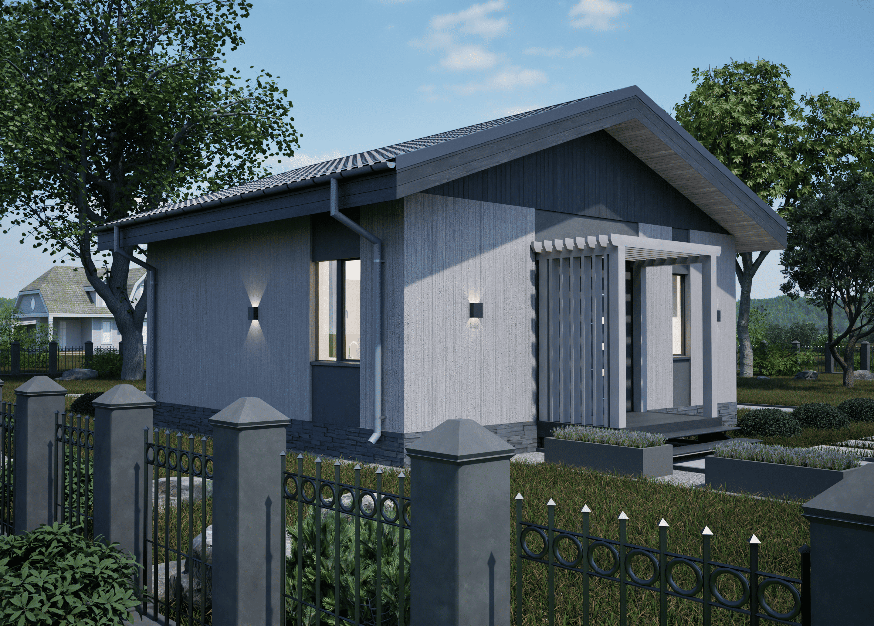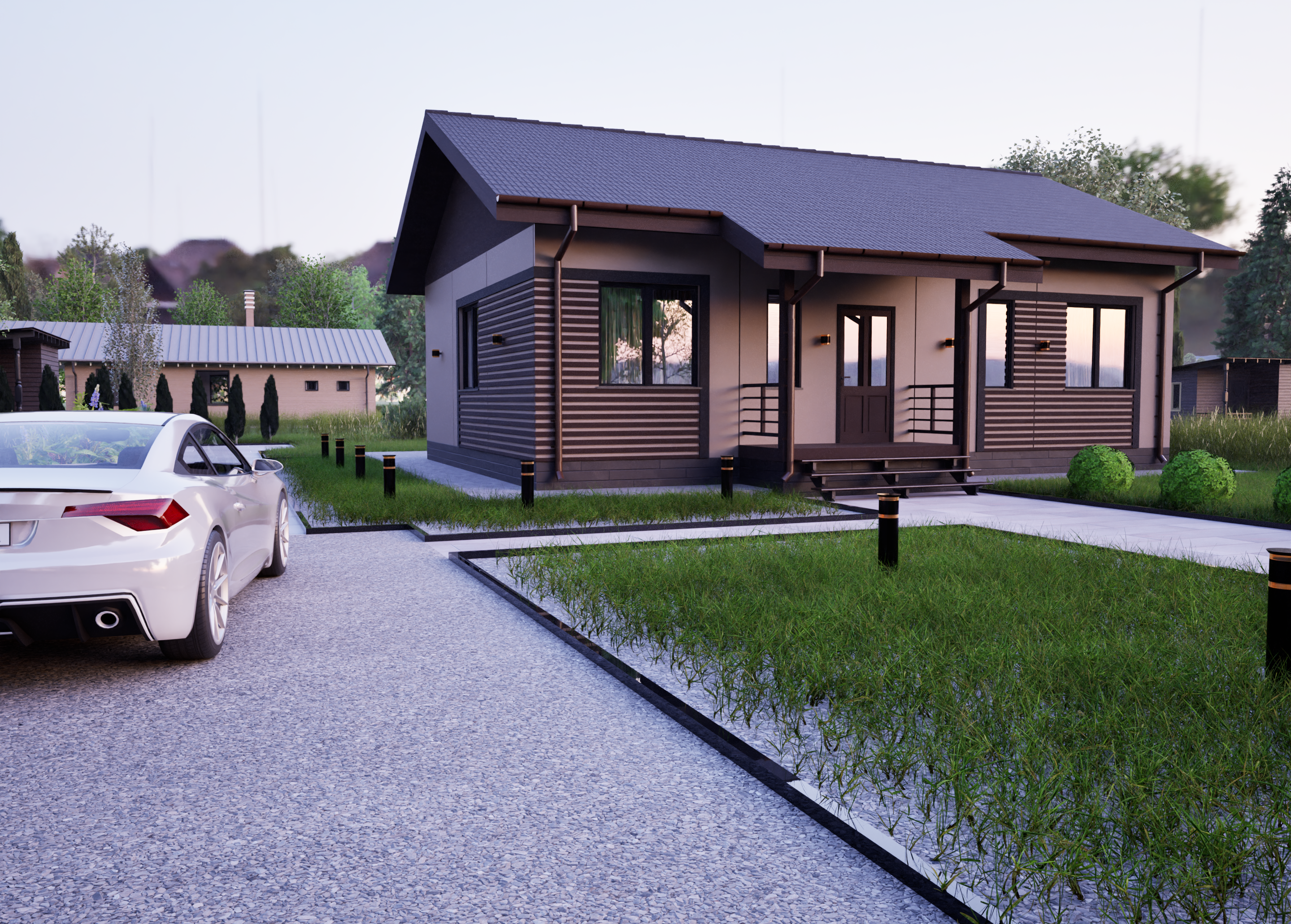 Реалистичные перспективные виды дома со всех сторон;
