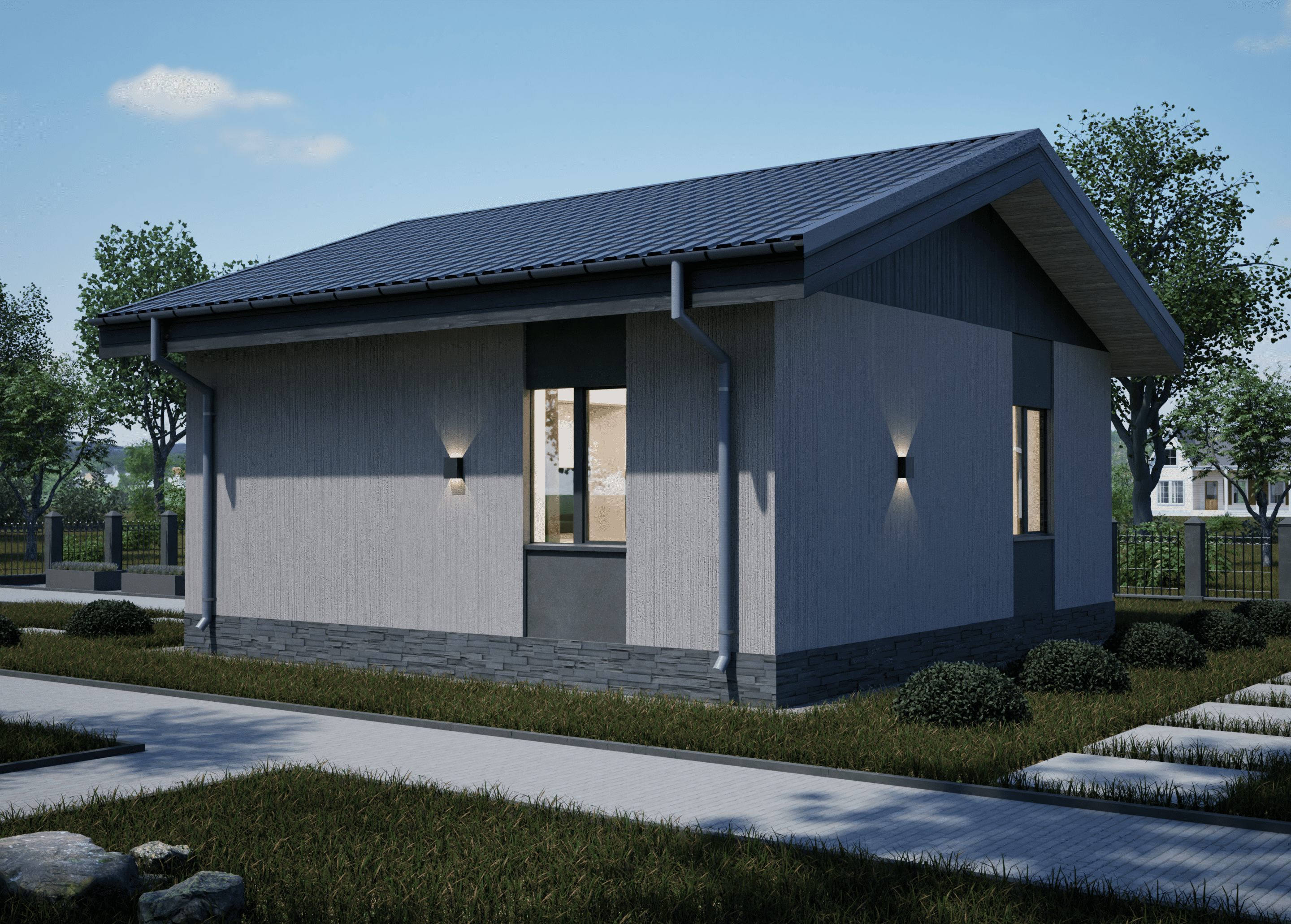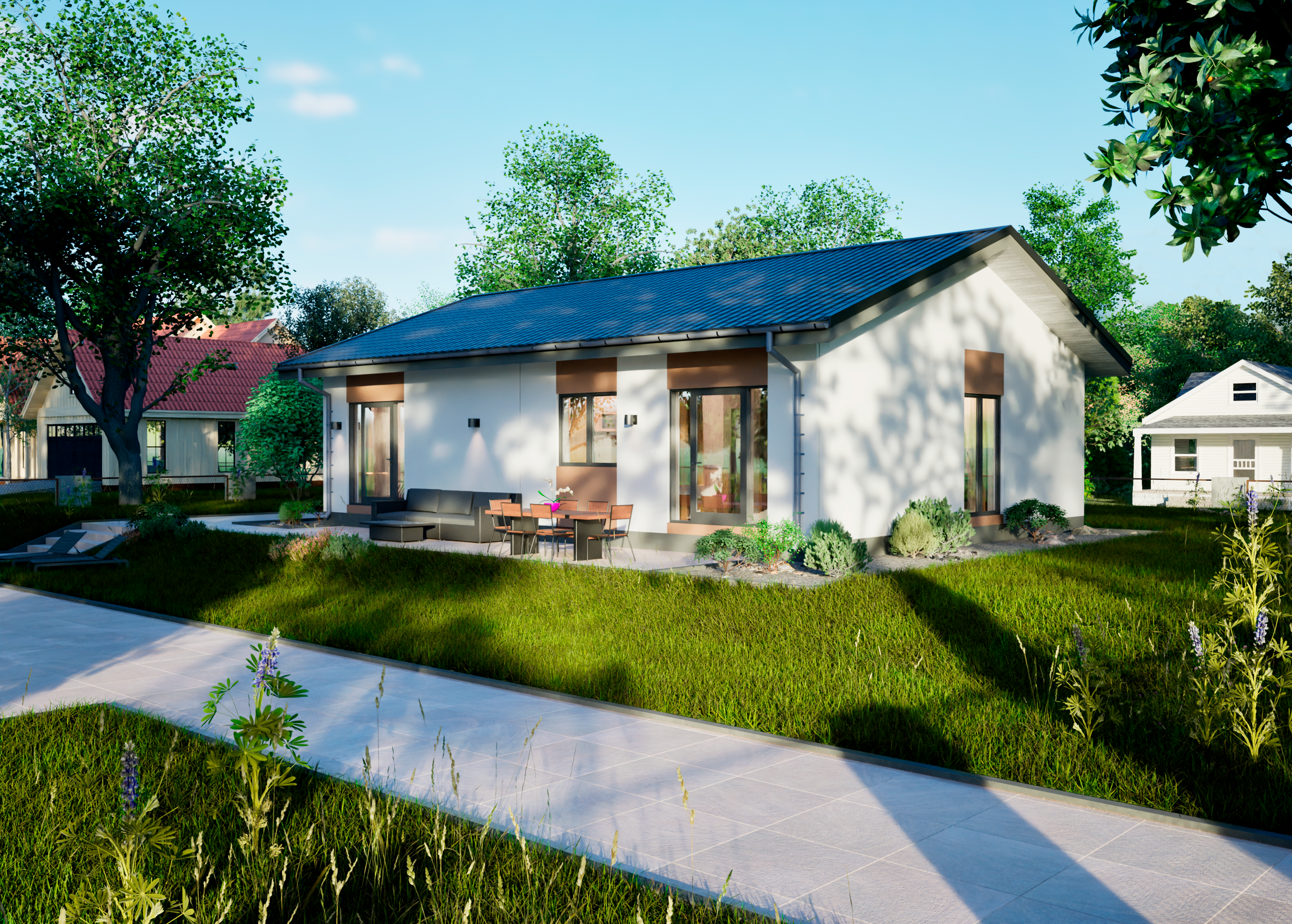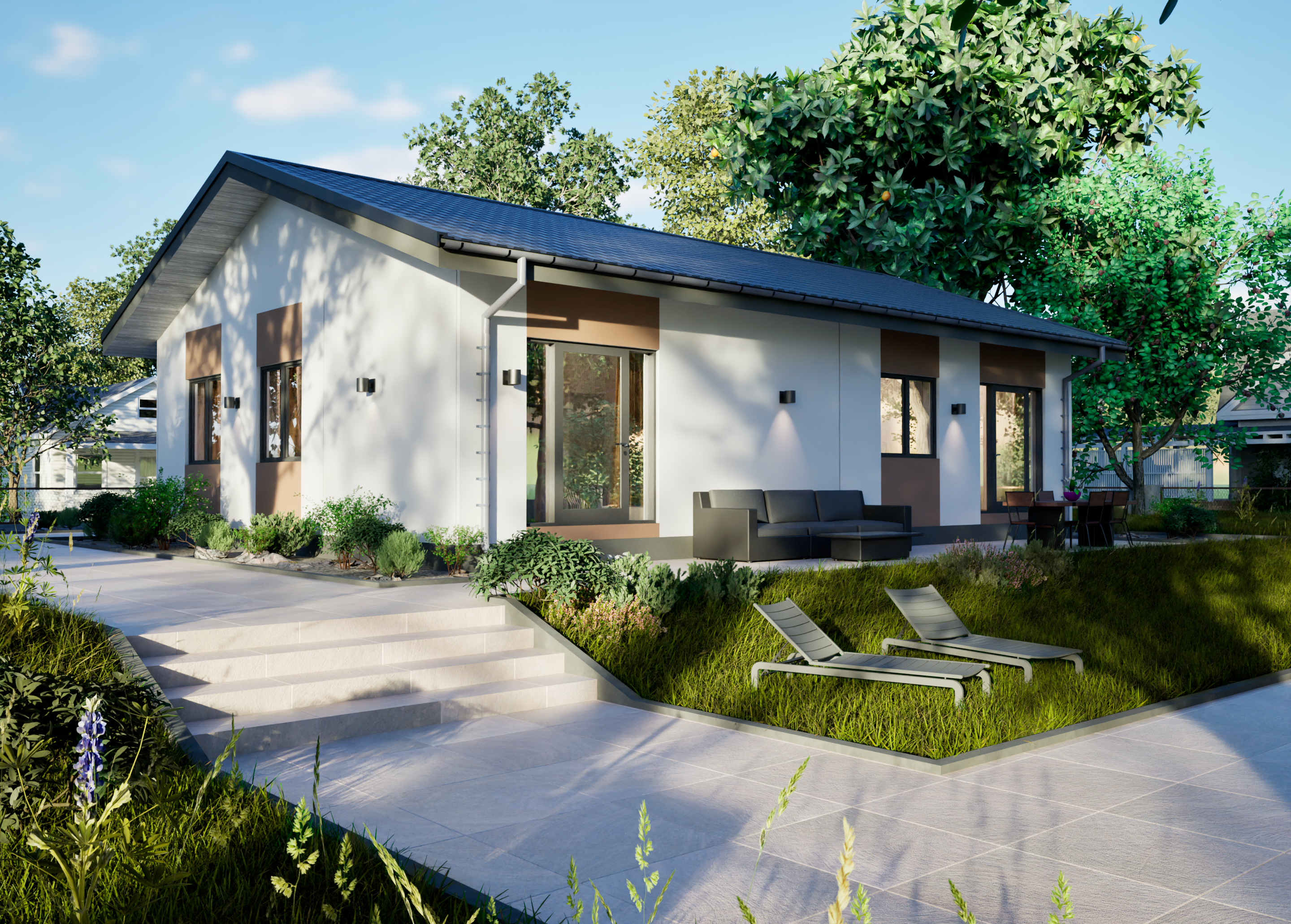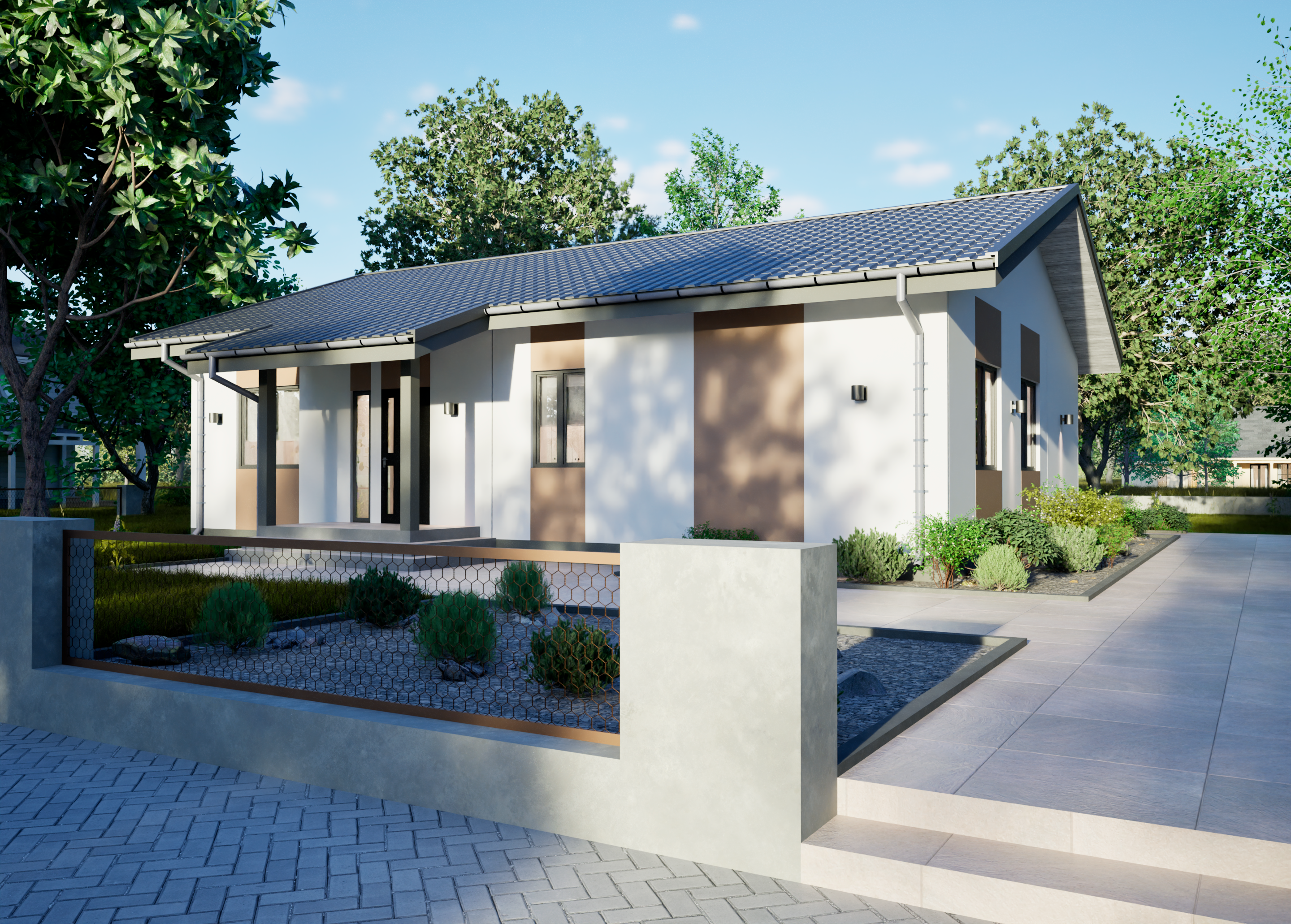 Реалистичные перспективные виды дома со всех сторон;